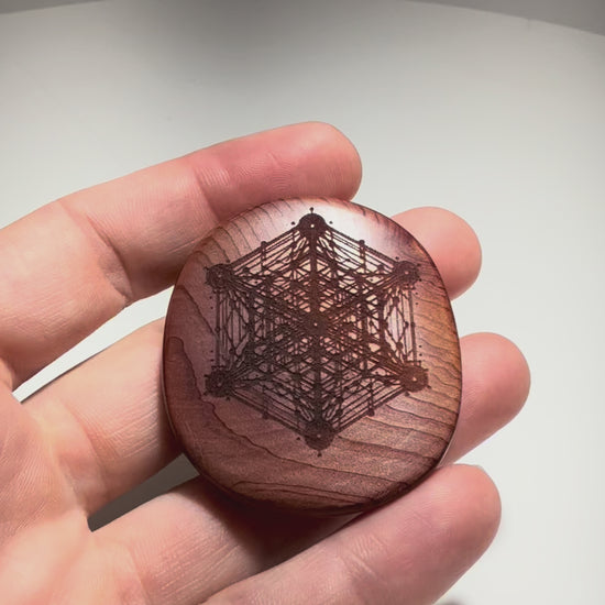 Aromatic Cedar Pocket Stone/ Fidget Palm wood Sacred Geometry #233