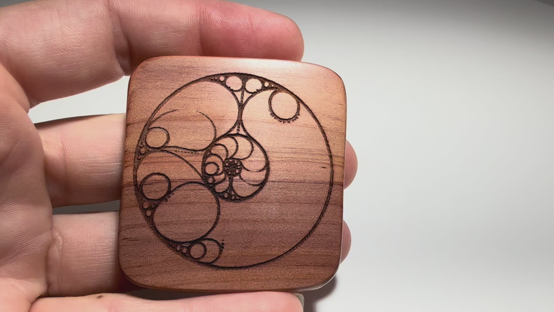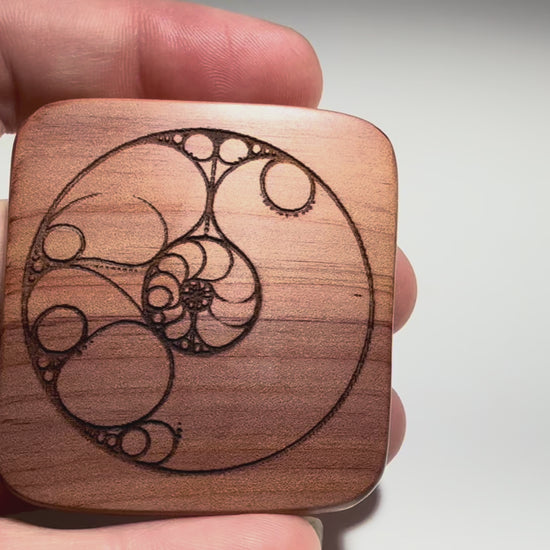 Handcrafted from Aromatic Cedar, the Sacred Geometry #27 wood palm stone/fidget wood is a perfect grounding tool. Its texture and form are pleasing and ideal for hand-held fidgeting. Finished with Real Milk Paint Co.’s Walnut Oil/Carnauba Wax blend, this fidget item boasts beautiful grain patterns and color.