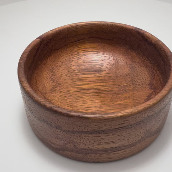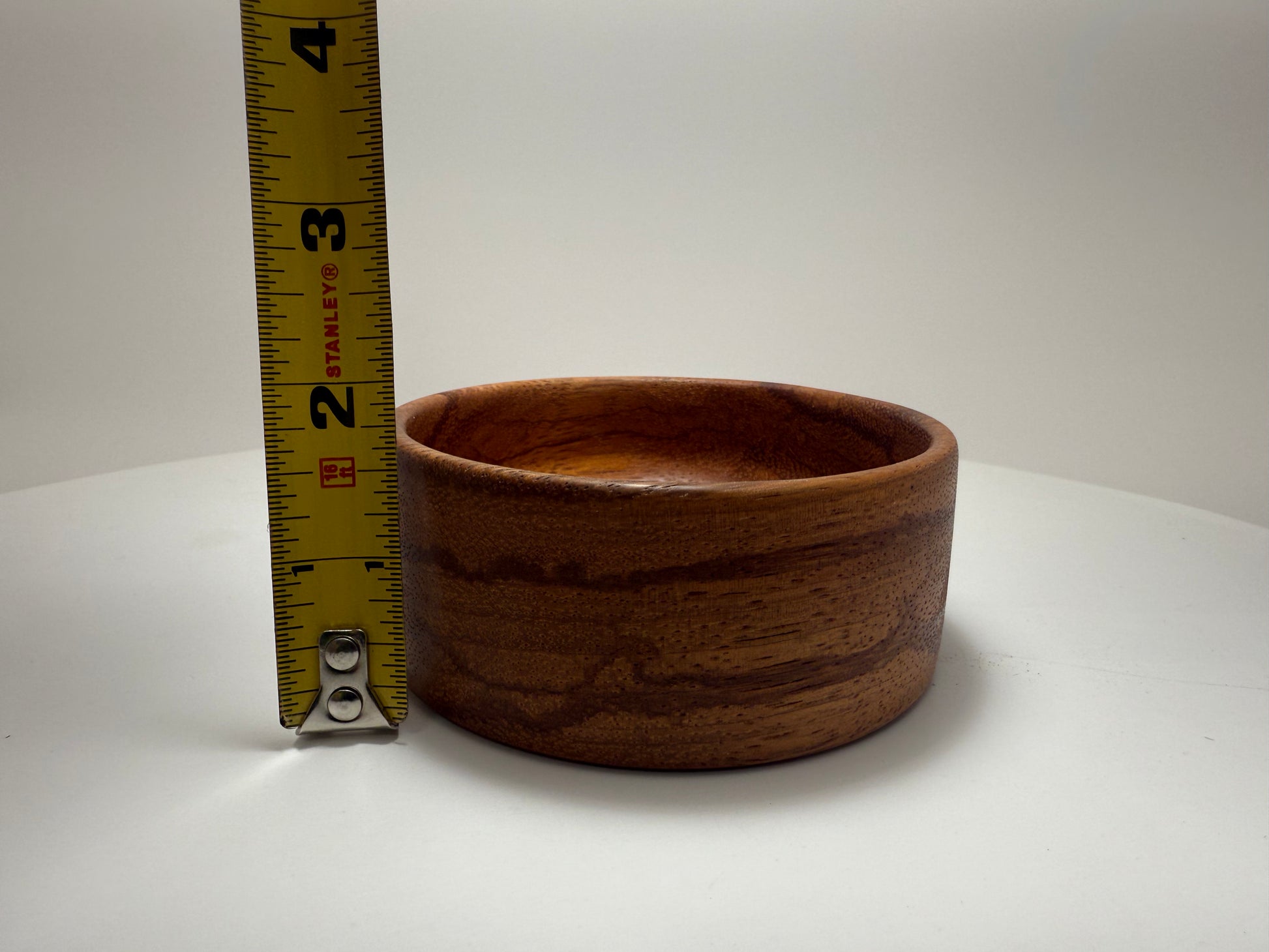 Expertly handcrafted, the Ebiara wood bowl, also known as Red Zebra Wood, is a stunning addition to any home. This decorative bowl is approximately 4inches wide and 1 5/8 inches tall. It is finished with Real Milk Paint Co.'s butcher block approved wood wax and should not be used with hot contents to maintain its finish. The wood wax used is a blend of walnut oil and carnauba wax. Regular reconditioning with butcher block approved conditioners is recommended. Please hand wash only for best results.
