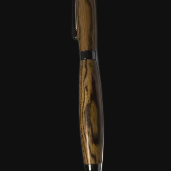 Expertly handcrafted with Bacote wood, this slimline twist pen boasts a sleek and stylish design. The gunmetal and CA glue finish add a distinctive touch to this fine writing instrument.